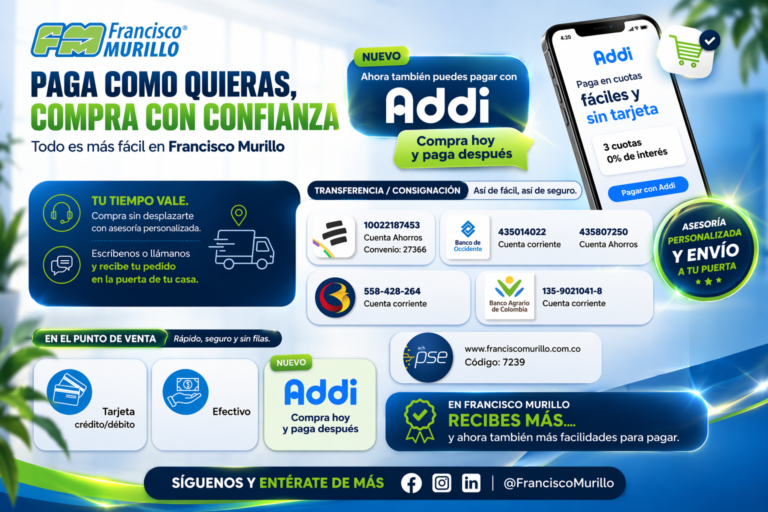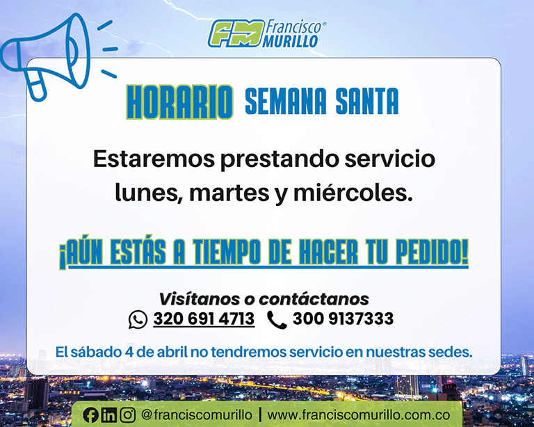 Francisco Murillo S.A.S. es una empresa distribuidora e importadora de artículos eléctricos con presencia en el mercado de Medellín y Antioquia desde 1952.